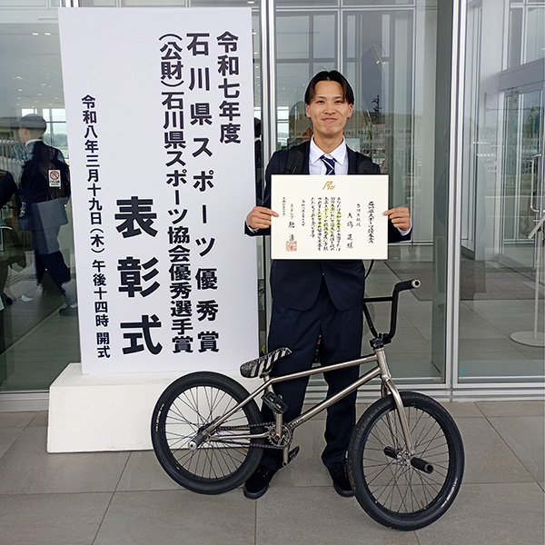 2025年度に石川県の方で活躍された方に表彰される石川県スポーツ優秀賞表彰式に石川県BMX協会として大嶋 蓮 選手が表彰。