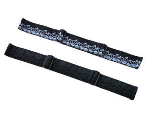 立体的に織られたバキ柄模様が特徴。バンドの端が金具なしで直接フレームに入り込んでいるタイプのゴーグルだと取り付け可能。是非お試しください。
