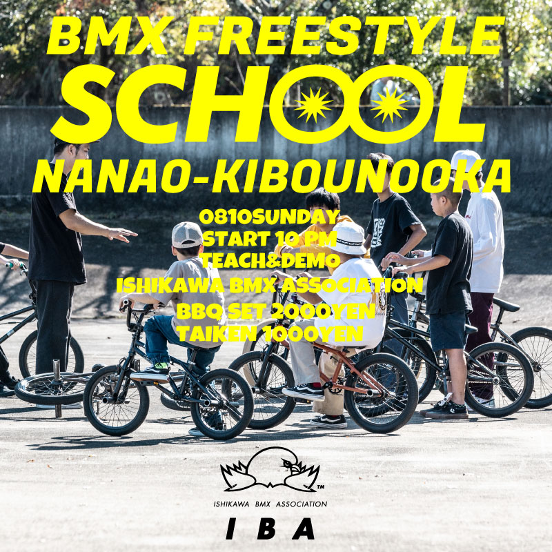 8月のスクールは七尾市 希望の丘公園 ローラスケート場にてBMX FREESTYLE SCHOOL開催