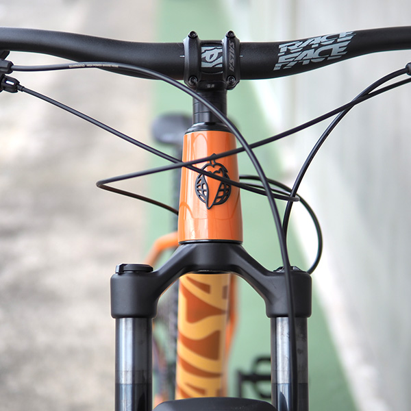 ハイレベルなライディングにも耐えるよう、ハンドルとフレームエンドに熱処理を施し、チェーンステー12.9″-13.38″と短めに設定。