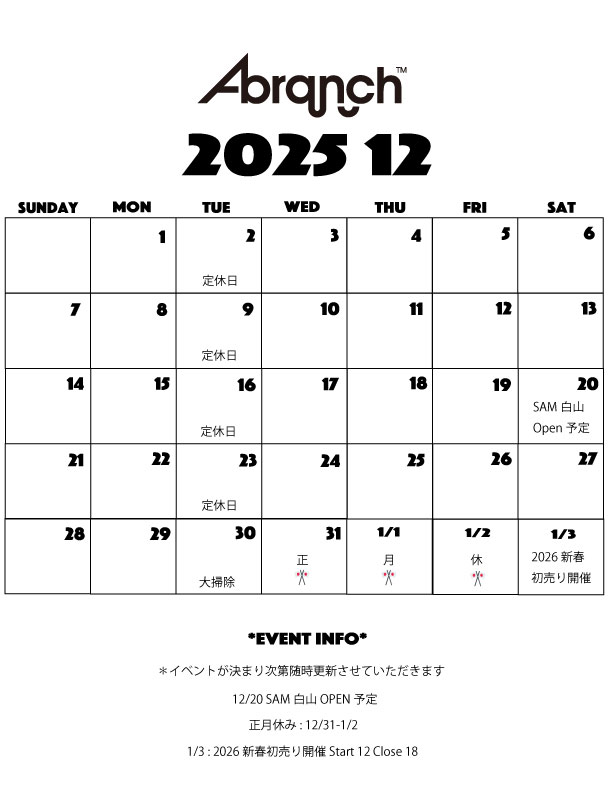来年も皆様を楽しいライフをサポートできるよう頑張っていきますので今後ともA-branchを宜しくお願いします。