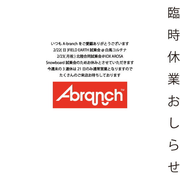 今週末の3連休 ですが22日(日)当店おすすめスノーボードブランドFIELD EARTHの試乗会が白馬コルチナで開催と23日(月祝)は北陸のショップ合同の試乗会に出店で21日(土)のみの営業となります。